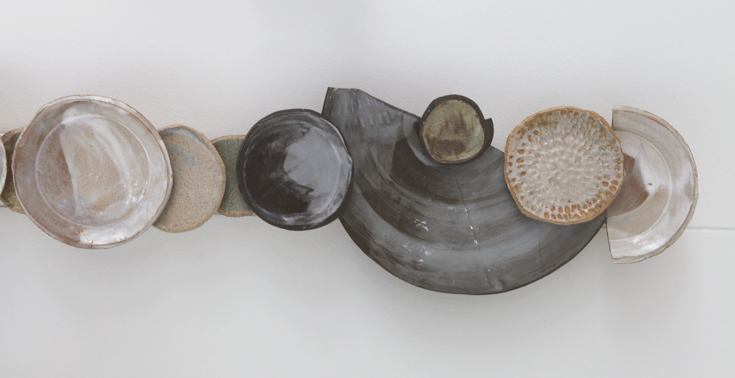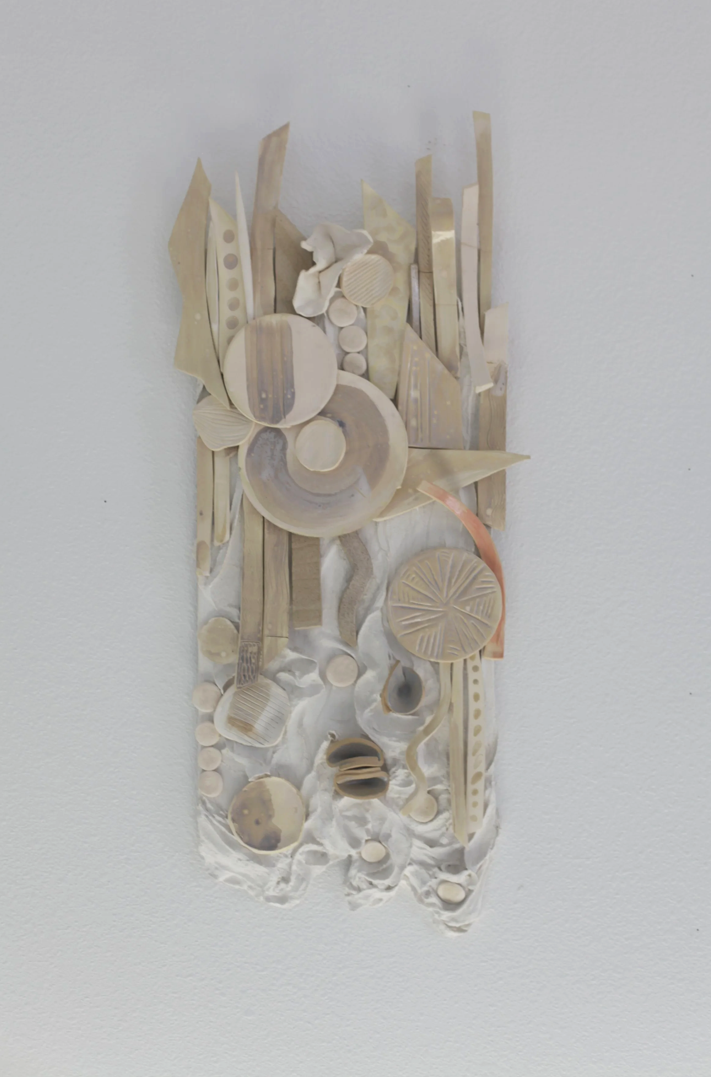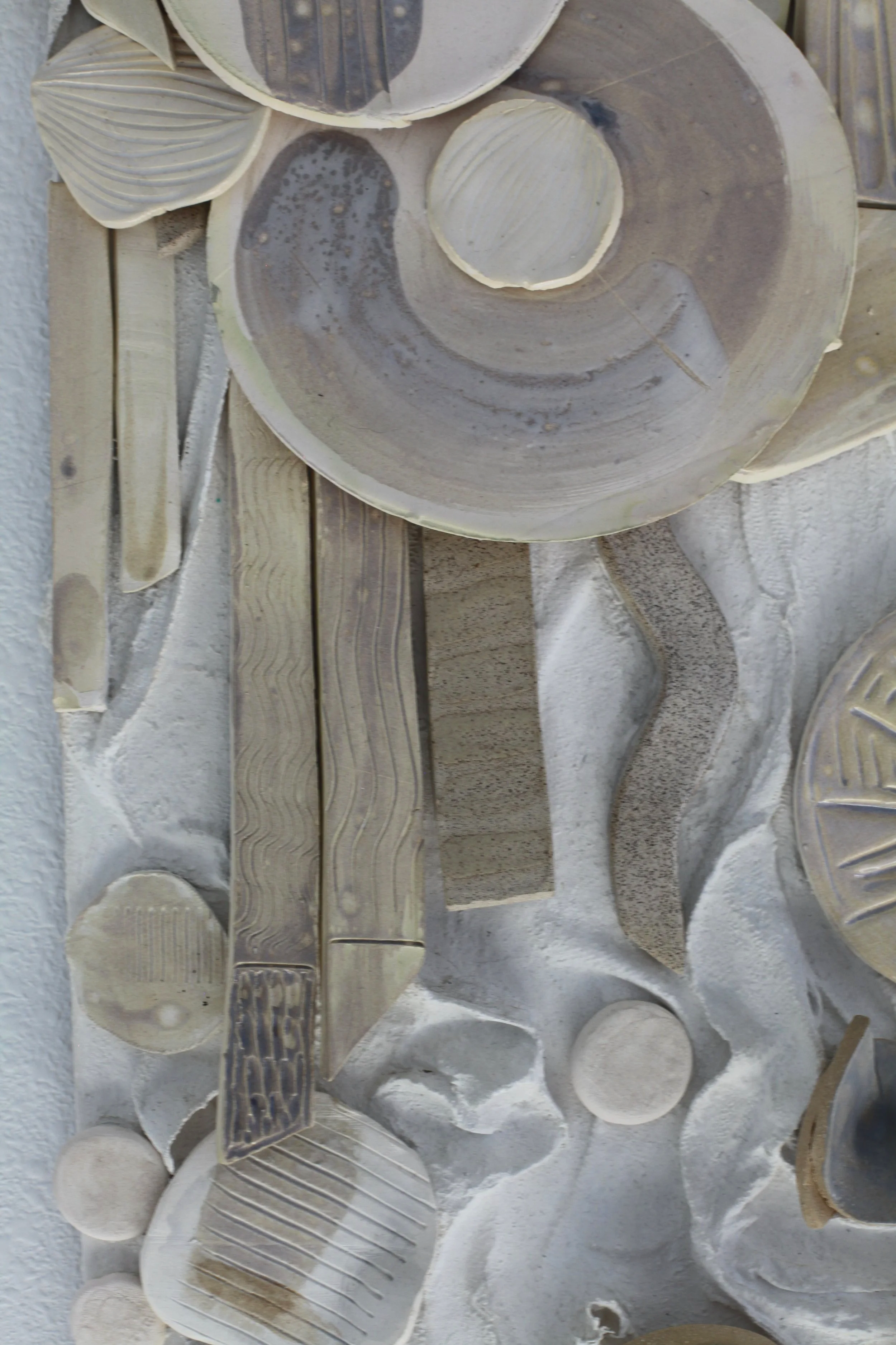 "Components" 2017Ceramic, Stoneware, glaze and plaster on Wood16”x 36”