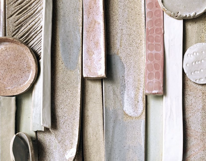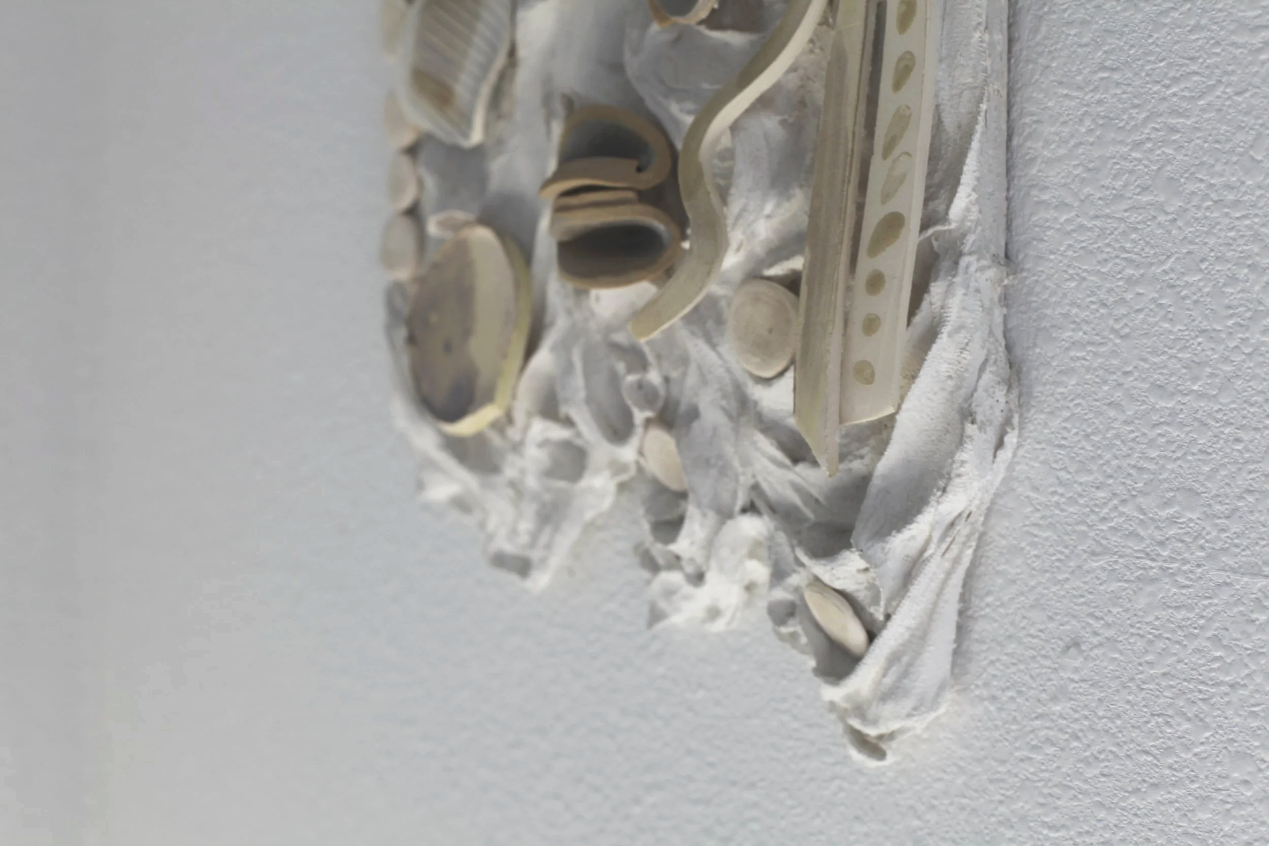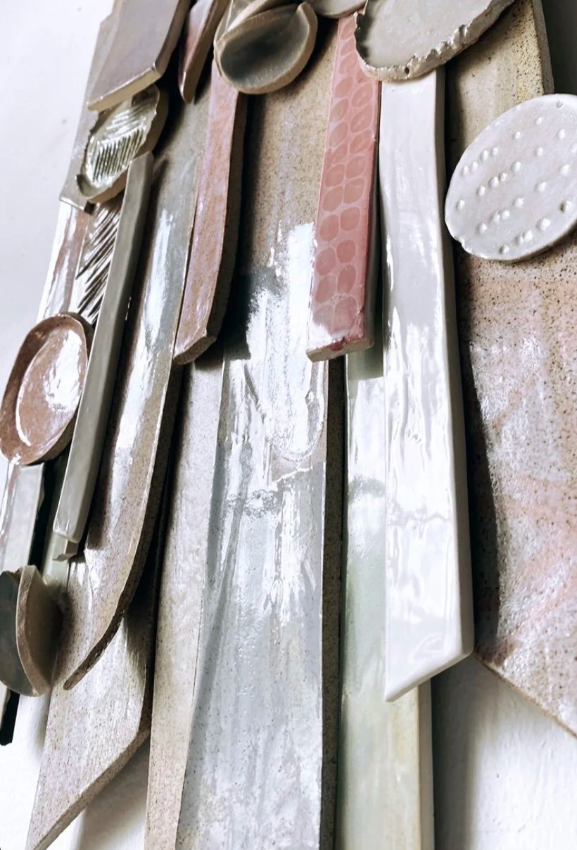 "Components" 2017Ceramic, Stoneware, glaze and plaster on Wood16”x 36”