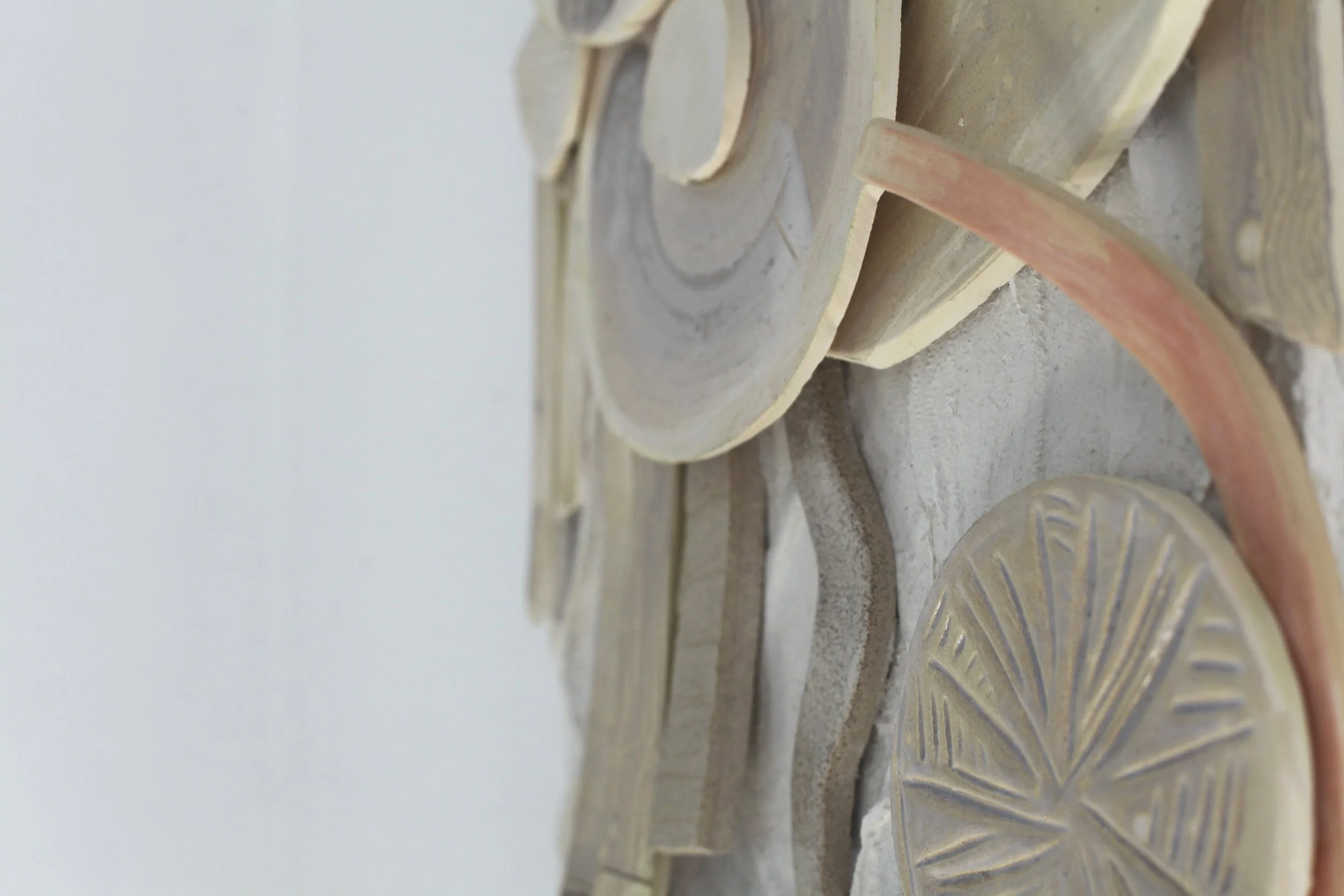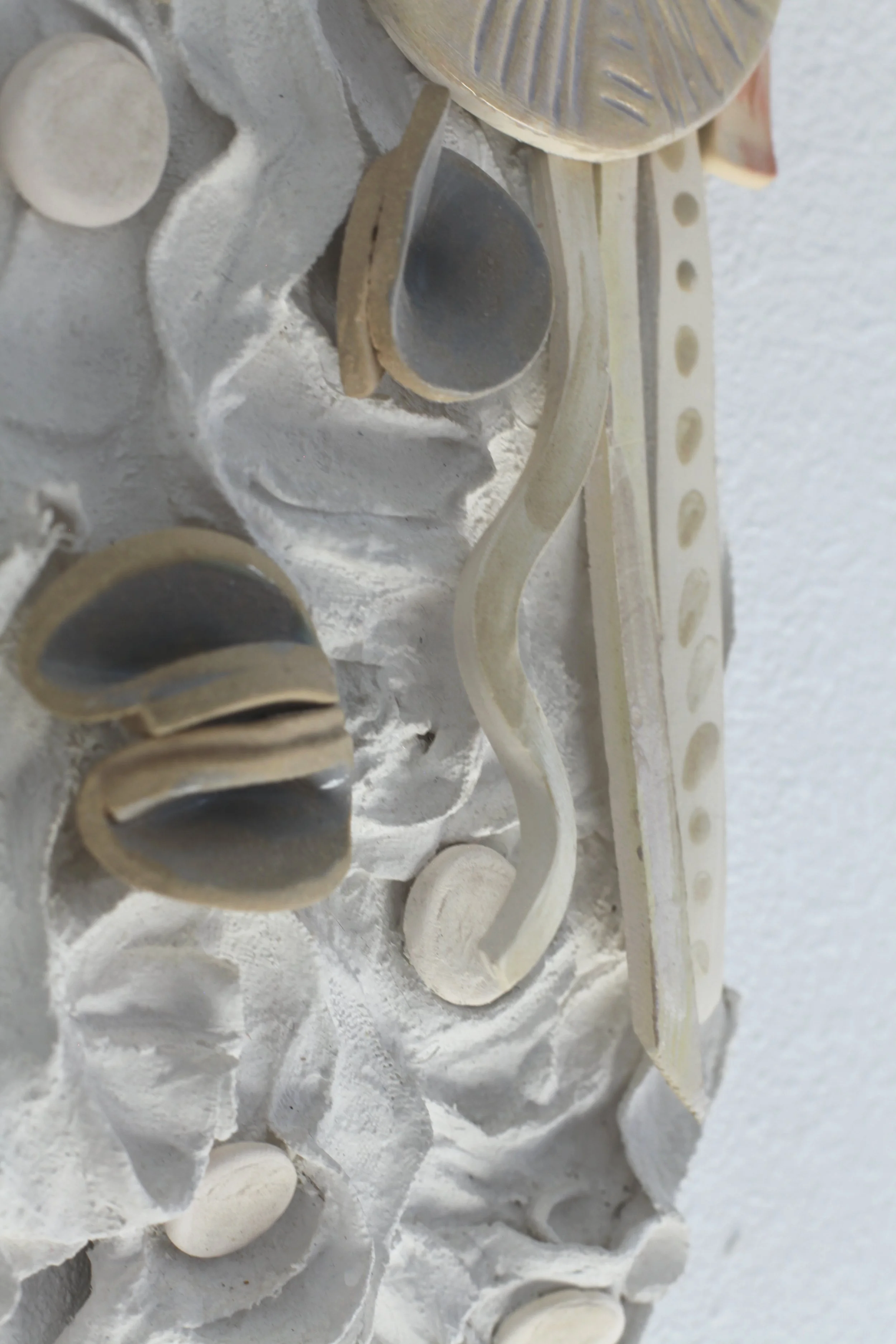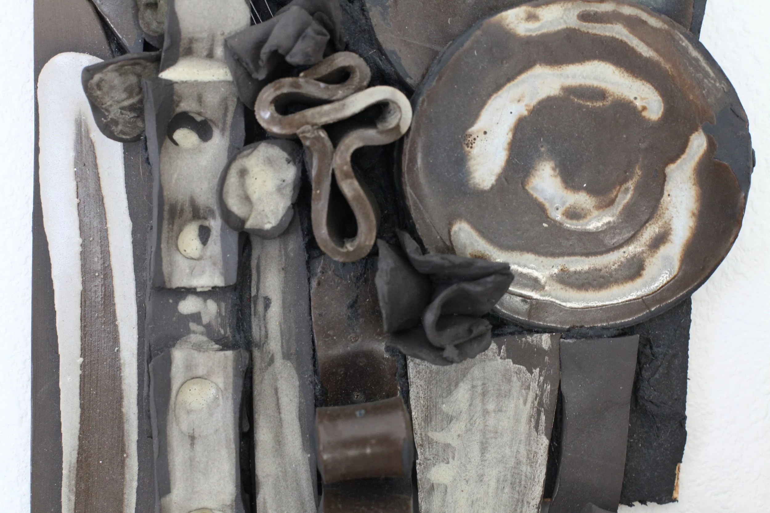 Ceramic, Stoneware, glaze, canvas, acrylic and plaster on Wood